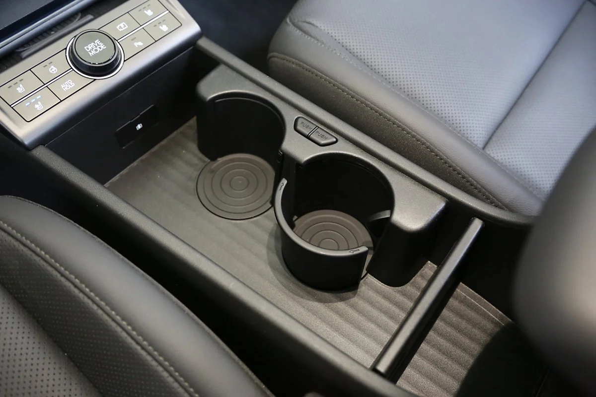 변속기가 스티어링 휠 뒤쪽으로 이동하게 되면서 센터콘솔의 공간에 여유가 생기게 됐는데요. 덕분에 가변형 컵홀더를 적용할 수도 있고, 작은 물건이나 스마트폰도 안전하게 보관할 수 있게 됐습니다.