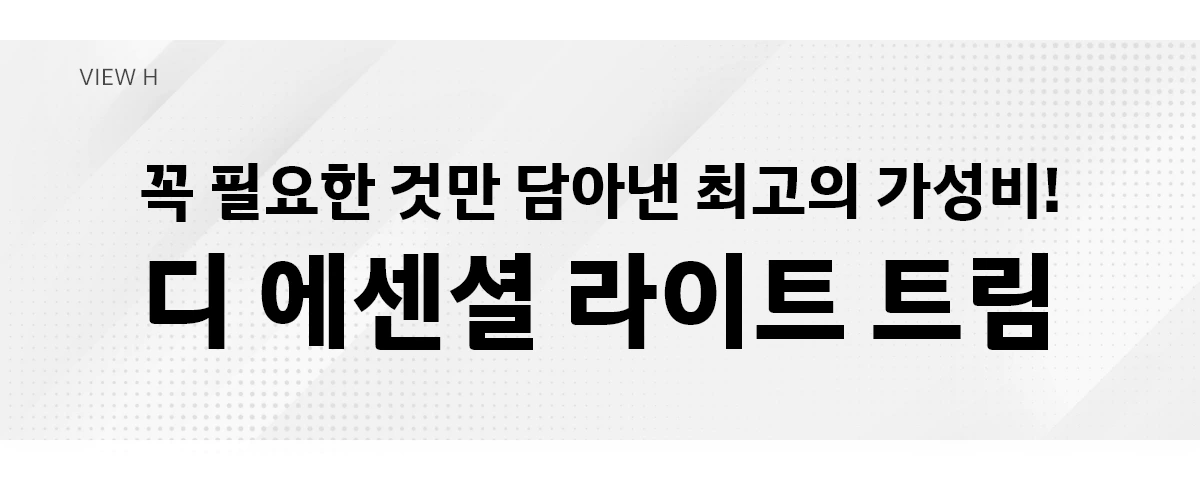여기에 이번 연식 변경을 통해 신설된 디 에센셜 라이트 트림은 기존 디 에센셜 트림보다도 더욱 가성비를 강조했습니다. 가격은 1,490만 원으로 디 에센셜 트림 보다 200만 원이 저렴하지만 기존 고객들의 선호도가 높은 사양을 기본화했습니다.