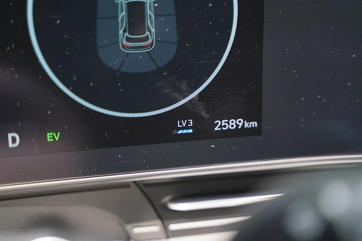 레벨 역시 0~3단계까지 조절할 수 있어 시내 주행 시 레벨을 2~3에 놓고 주행하면 브레이크 페달 사용을 줄일 수 있습니다. 또한 왼쪽 페들시프트를 길게 당기면, 당기는 동안 회생제동 레벨이 최대치로 설정되고, 전기차와 마찬가지로 완전 정차까지 가능합니다.
