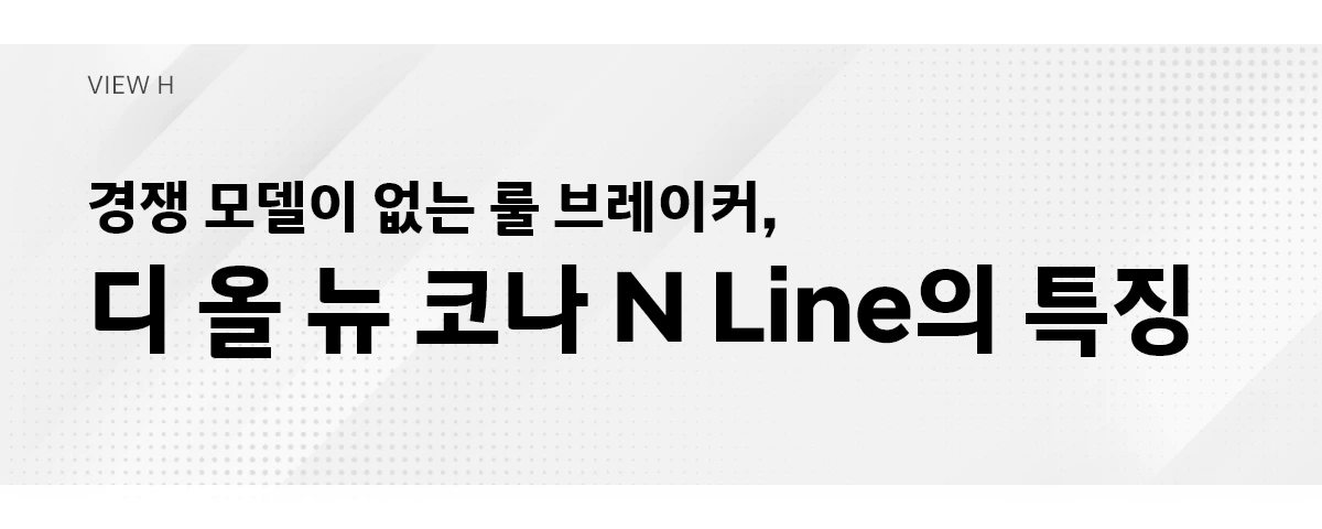 이처럼 디 올 뉴 코나는 여러 가지 방면에서 뛰어난 독보적인 SUV입니다. 여기에 스타일리시한 N Line 디자인으로 고성능차 감성까지 담았으니, 국내 시장에서는 이미 대체할 수 있는 선택지가 없다고 봐도 좋습니다. 한 대의 자동차로 다양한 라이프스타일을 추구하고 싶다면, 지금 바로 가까운 전시장이나 모터스튜디오에서 디 올 뉴 코나 N Line의 매력을 직접 확인해 보시기 바랍니다.