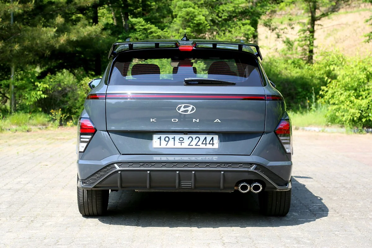 윙타입 스포일러는 전면에서 시작된 스포티한 감성을 이어 받았고, 디퓨저를 형상화한 범퍼 디자인 역시 위아래 모두 균형감 있게 배치되었습니다. 그러면서도 싱글 트윈팁 머플러를 드러내 포인트를 주었는데요. 코나의 얇은 심리스 호라이즌 램프와 LED 테일램프 등이 어우러지면서 하이테크 한 이미지까지 그대로 챙겼습니다.