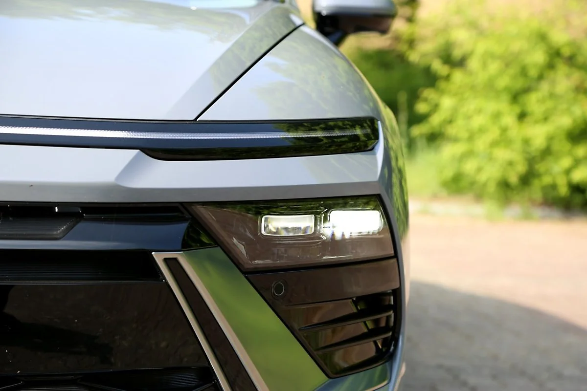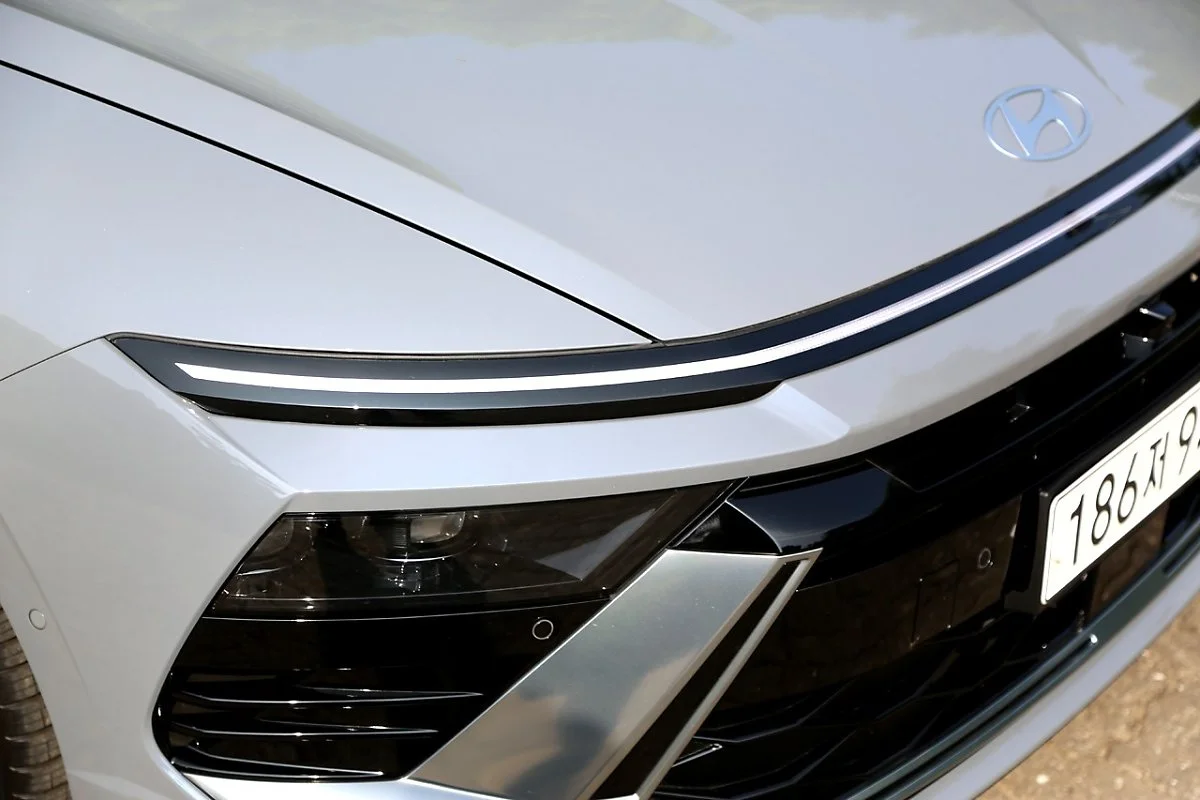 우선 현대차의 최신 디자인 요소로 자리잡은 심리스 호라이즌 램프가 전면부 시선을 사로잡습니다. 끝에서 끝까지 단 하나의 끊김도 없이 이어져있습니다. 하지만 그랜저나 코나와는 다른 감성을 가졌는데요, 램프와 후드 사이의 경계가 없어지면서 평면적이면서도 살아있는 듯한 형태로 거듭났습니다.