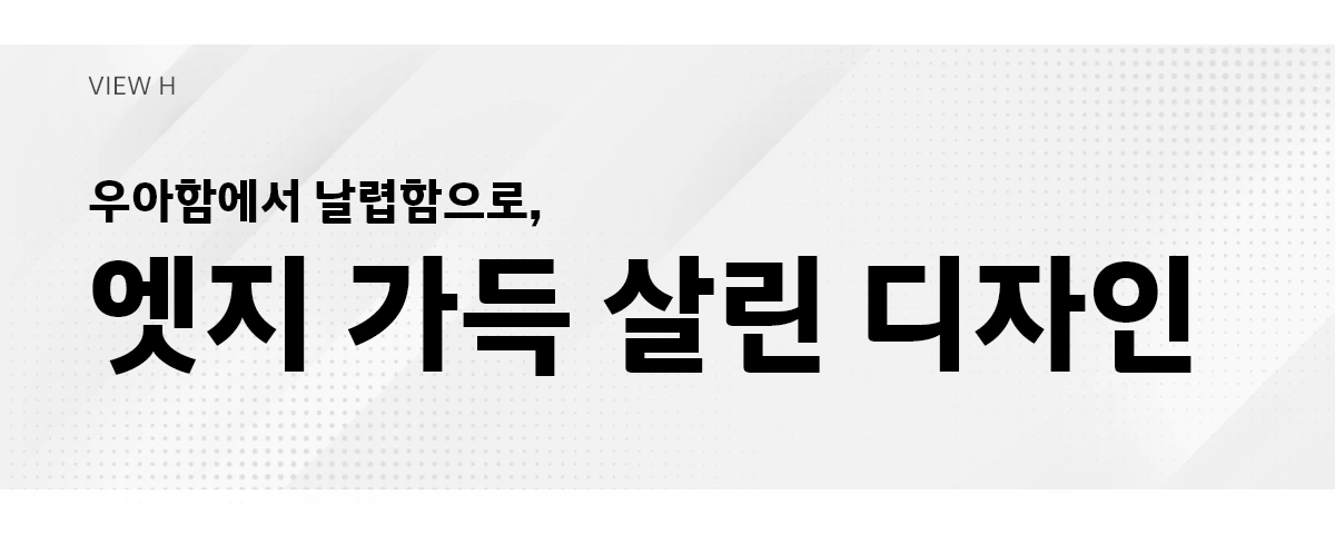 8세대 쏘나타의 외관은 현대차 디자인 철학인 센슈어스 스포티니스를 토대로 합니다. 2019년 처음 선보인 초기형부터 그랬습니다. 쏘나타 디 엣지의 디자인도 센슈어스 스포티니스를 바탕으로 하지만, 그 해석의 방법은 완전히 달라졌습니다. 기존 쏘나타가 우아함을 전면에 내세웠다면, 쏘나타 디 엣지는 역동적인 4도어 쿠페 실루엣을 확실하게 살리며 완성도 높은 매력을 뽐냅니다.