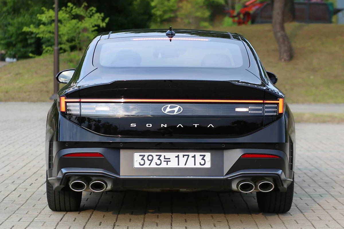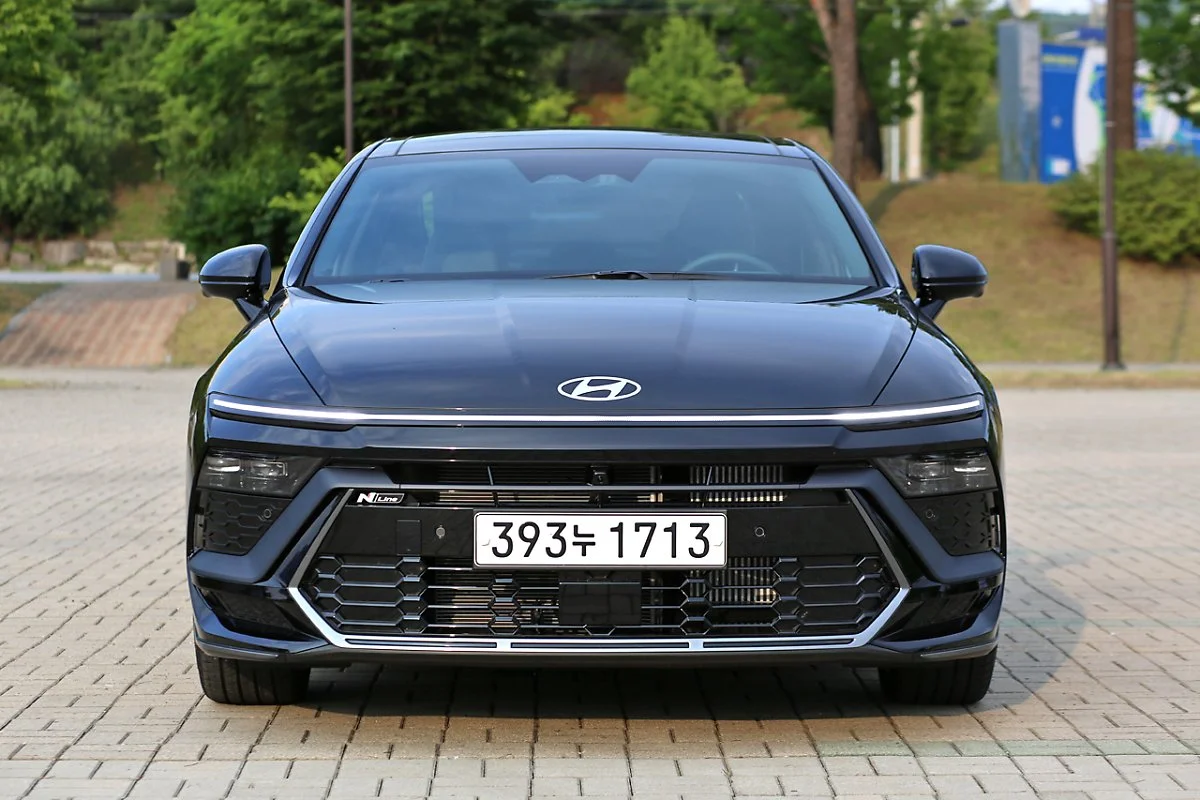 쏘나타 디 엣지의 첫인상은 '익숙하면서도 완전히 새로운 감각'입니다. 전면부는 심리스 호라이즌 램프로 시선을 사로잡습니다. 라디에이터 그릴과 헤드램프가 일체화된 범퍼 디자인으로 세련된 느낌을 표현했습니다. 스마트스트림 2.5 터보 엔진이 들어가는 쏘나타 N Line은 무광 블랙 포인트를 추가하고 범퍼 하단의 디자인을 새로 구성했습니다. 이로 인해 기본 모델 대비 스포티함이 더 적극적으로 표현됐습니다. 범퍼 양 끝단의 크롬 가니시는 N 모델의 레드 포인트와 동일한 디테일을 가집니다.