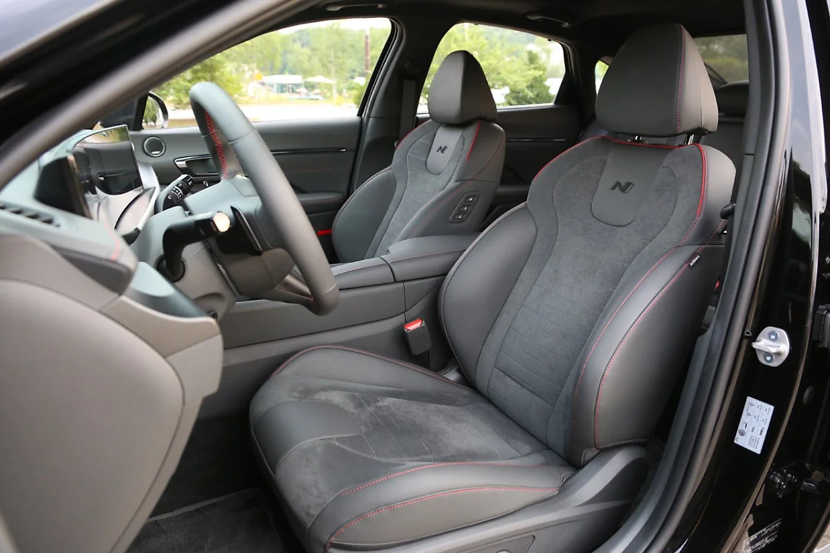 전용 1열 버킷 시트는 다이내믹함과 편안함 모두를 추구하는 N Line의 성격을 그대로 보여줍니다. 운전자를 확실하게 잡아주면서도 푹신한 소재를 활용해 착좌감과 승차감을 놓치지 않았습니다. N 모델에는 적용되지 않았던 스웨이드까지 더해지면서 고급감도 높아졌습니다.