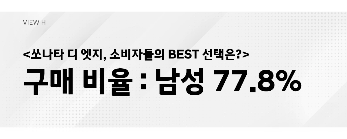 쏘나타 디 엣지는 전체 구매자 중 77.8%가 남성일 정도로 남성들에게 높은 선호도를 보였습니다. 이전 쏘나타의 경우 유려한 곡선을 통해 여성미가 강조된 디자인이었다면, 이번 쏘나타 디 엣지는 직선을 차체 곳곳 적용했고 심리스 호라이즌 램프 등 현대자동차의 최신 디자인 요소들로 인해 남성미 넘치는 디자인으로 탈바꿈했기 때문인 것으로 추측됩니다.