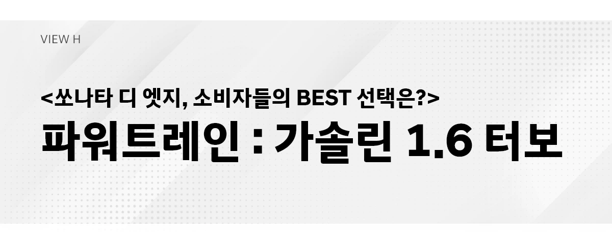 스마트스트림 가솔린 1.6터보 엔진은 기본이라고 할 수 있는 스마트스트림 가솔린 2.0 엔진보다 68만 원 더 비쌉니다. 또한 국내 중형차는 전통적으로 2리터 가솔린 엔진이 공식으로 통하고 있는 시장입니다. 그러나 쏘나타 디 엣지를 구매한 전체 소비자 중에서 41.4%는 스마트스트림 가솔린 1.6터보 엔진을 선택했는데요, 이를 통해 현대자동차의 스마트스트림 가솔린 1.6터보 엔진에 대한 높은 신뢰도도 엿볼 수 있습니다. 뒤를 이어 스마트스트림 가솔린 2.0 엔진은 쏘나타 디 엣지를 구매한 전체 소비자 중 24.9%가 선택하며 2위를 차지했습니다.