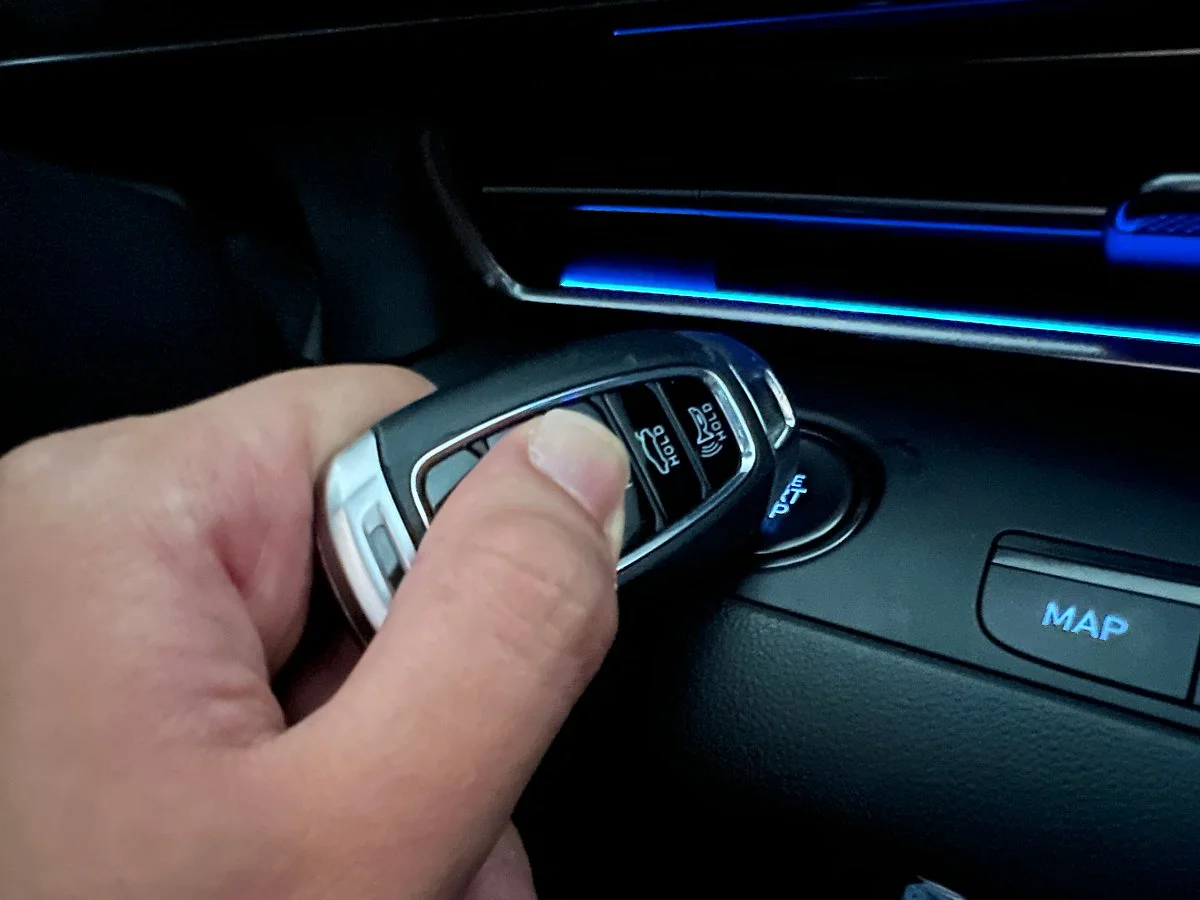무사히 차에 올라탔다면 다음은 시동입니다. 이 역시 간단합니다. 대부분의 스마트키는 방전 상태에서도 시동을 걸 수 있도록 하고 있습니다. 바로 손가락이 아닌 스마트키를 버튼에 직접 대는 방식입니다. 스마트키에 내장된 칩과 스타트 버튼에 내장된 칩이 서로 통신되어 시동을 걸 수 있게 되는 것이죠. 이러한 방식을 '림폼 방식'이라고 말합니다.