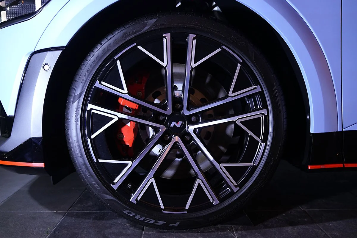 트랙 주행에 적합한 제동 성능도 아이오닉 5 N의 특징입니다. 특히 앞바퀴에는 400mm라는 상당한 크기의 브레이크 디스크와 4피스톤 모노 블록 캘리퍼가 장착됐는데요. 이를 통해 높은 출력에 걸맞은 높은 제동 성능도 함께 갖췄습니다. 그뿐만 아니라 언더커버 디퓨저, 냉각 홀 등을 통해 공기 흐름을 최적화함으로써 제동 시 냉각 성능도 향상시켰습니다.