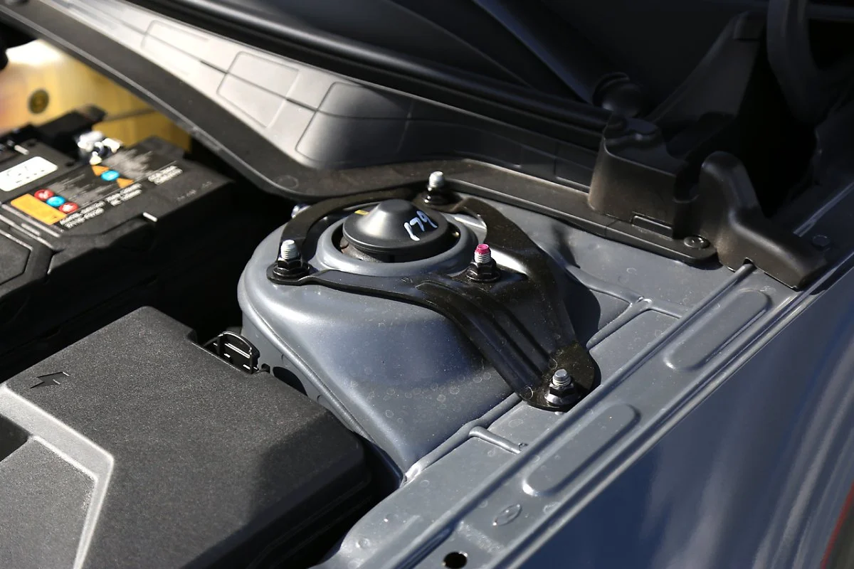 부드러운 승차감과 탄탄한 승차감을 조절할 수 있는 전자 제어 서스펜션 외에도 더 뉴 아반떼 N은 차체 보강을 통해 뛰어난 운동성능을 뒷받침해 주기 충분한 차량의 강성을 확보했습니다. 그중에서도 전륜 서스펜션 마운트 부분에 스트럿링을 덧대 강성을 확보한 것은 물론이며 시각적으로도 만족도를 높여줍니다.
