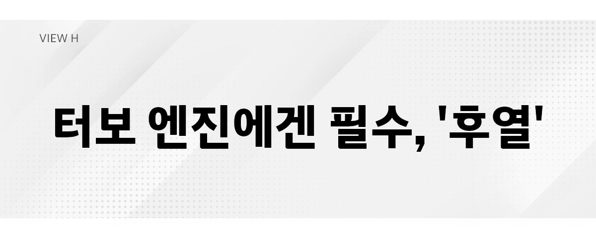후열은 특히 과급기, 즉 터보차저를 장착한 자동차에서 필요한 과정입니다. 터보차저가 장착된 자동차는 자연흡기 엔진보다 더 많은 공기를 흡입하고 높은 출력을 내도록 설계됐기 때문에 터보차저의 열관리가 제대로 되지 않으면 내구성에 문제가 생길 수 있습니다.