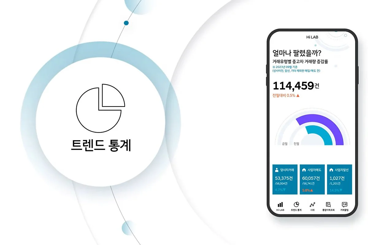 현대자동차는 중고차와 관련된 모든 정보를 담은 Hi-LAB(하이-랩)을 개발했습니다. 하이-랩은 현대자동차가 직접 엄선한 중고차 정보를 가득 담았습니다. 하이-랩은 중고차 통합 이력 조회 서비스를 지원합니다. 이를 통해 소비자가 구매하려는 차량이 정상 매물로 등록된 차량이 맞는지 손쉽게 확인이 가능합니다. 국토교통부에 매매가 가능한 정상 매물로 등록이 됐다면 차량의 기본 정보를 비롯해 보험사고 이력, 성능점검 이력, 주행거리, 리콜 이력 등 차량의 상세한 정보도 확인할 수 있습니다.