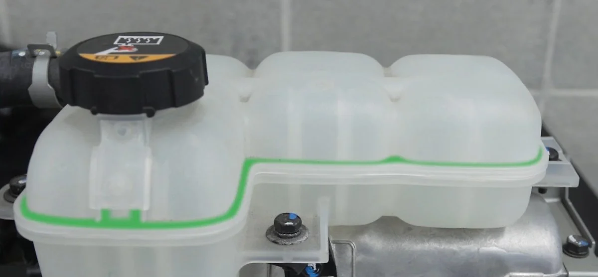 오버플로로 냉각수가 배출되면 커버의 이음새 부분을 따라 흐르는 경우가 많습니다. 따라서 냉각수가 리저버 탱크의 접합부에 묻어있는 경우라면, 먼저 해당 흔적을 닦아내고 차 시동을 다시 걸어 10분 내로 재확인해보면 오버플로 여부를 쉽게 확인할 수 있습니다. 만약 이 경우 냉각수 누수가 없다면 리저버 탱크는 정상인 것이죠.