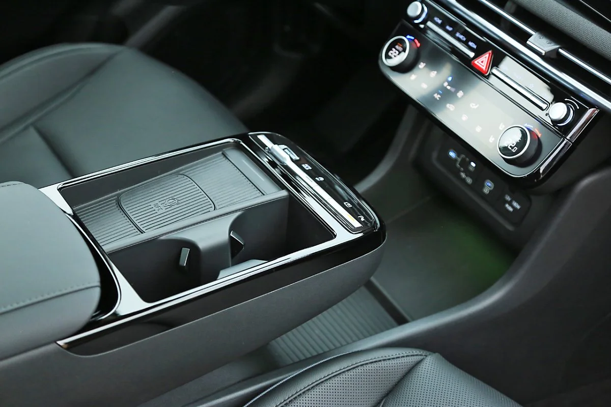 변속기가 버튼식에서 칼럼식으로 옮기면서 센터 콘솔 공간은 한층 여유로워졌습니다. 더 뉴 투싼에서는 이 공간을 활용도가 높은 플로팅 콘솔을 적용했습니다. 콘솔 부분에는 스마트폰 무선 충전과 함께 두 개의 컵홀더를 놓을 수 있도록 했고, 콘솔 하단에는 별도의 트레이를 통해 가방 등의 큰 물건을 놓을 수 있도록 했습니다.