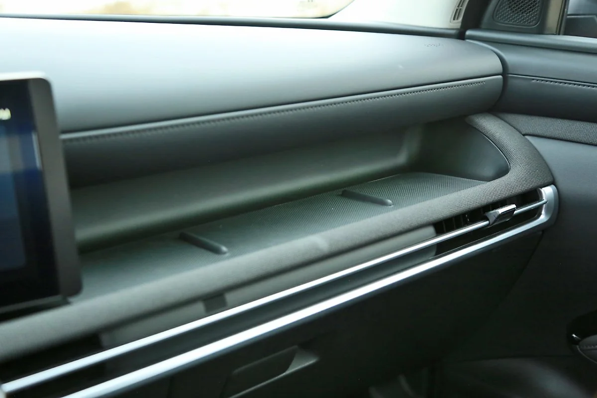 파노라믹 커브드 디스플레이뿐 아니라, 실내 전반적인 디자인이 수평 형태를 이루면서 미래지향적인 느낌이 더해진 것도 특징입니다. 동승석 대시보드 전방에는 오픈 트레이와 함께 무드램프가 적용되어 고급스러움과 안락함까지 느낄 수 있도록 했습니다.