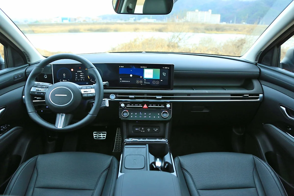 더 뉴 투싼의 외관은 기존 분위기에 새로움을 더한 정도에 그쳤습니다. 반면 실내는 완전변경 모델이라고 해도 될 정도로 상당한 변화를 거쳤습니다. 새로운 실내 구성요소를 통해 개방감은 물론 고급감까지 비약적으로 상승한 것이 포인트입니다.
