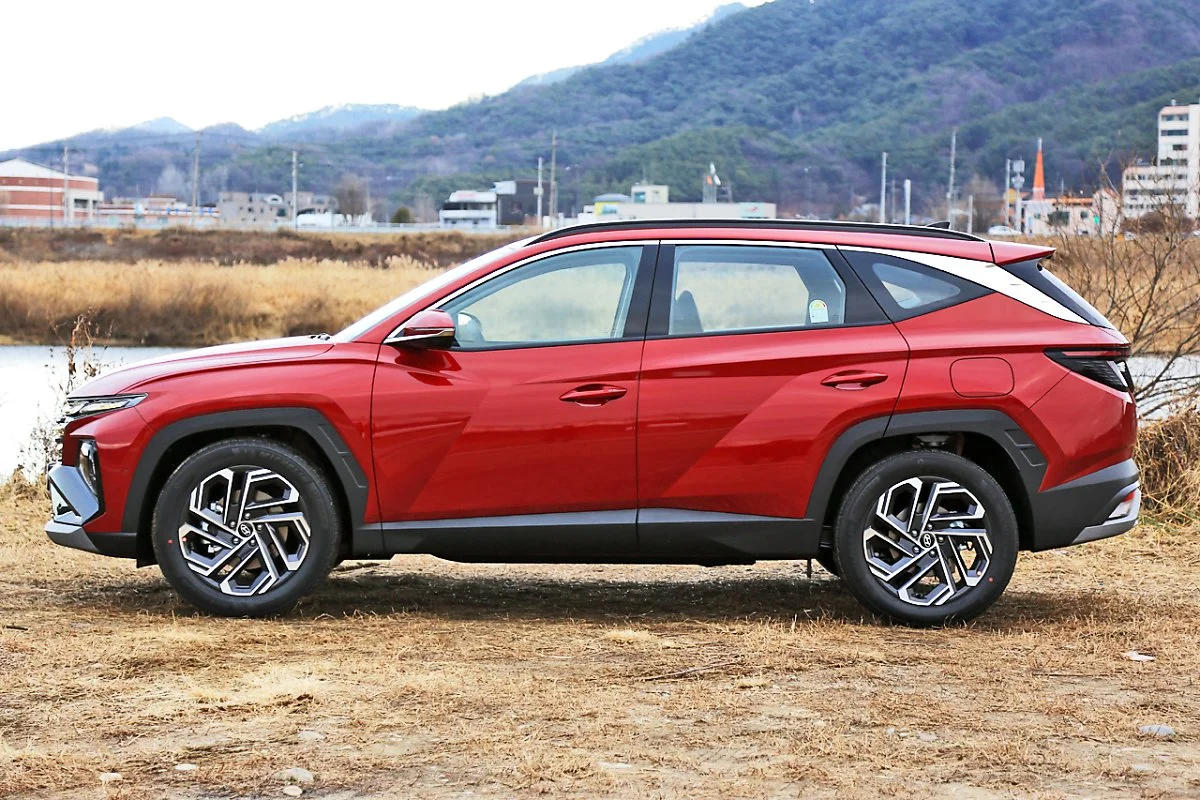 측면 역시 기존 투싼의 강렬한 캐릭터 라인을 그대로 가져가고 있습니다. 이와 함께 단단하면서도 날렵한 이미지의 캐릭터 라인이 SUV로서의 정체성을 한층 부각시키고 있습니다. 새로운 휠 디자인은 정지 상태에서도 차가 앞으로 나가는 듯한 역동성을 부여합니다.