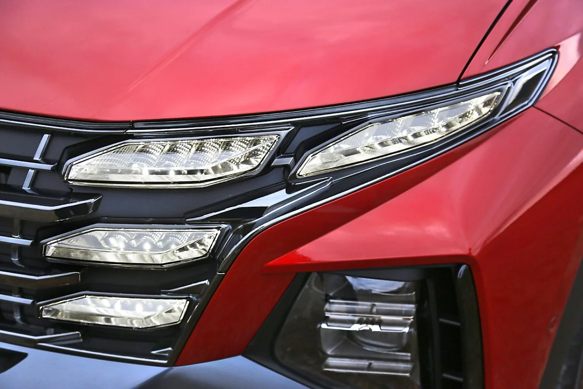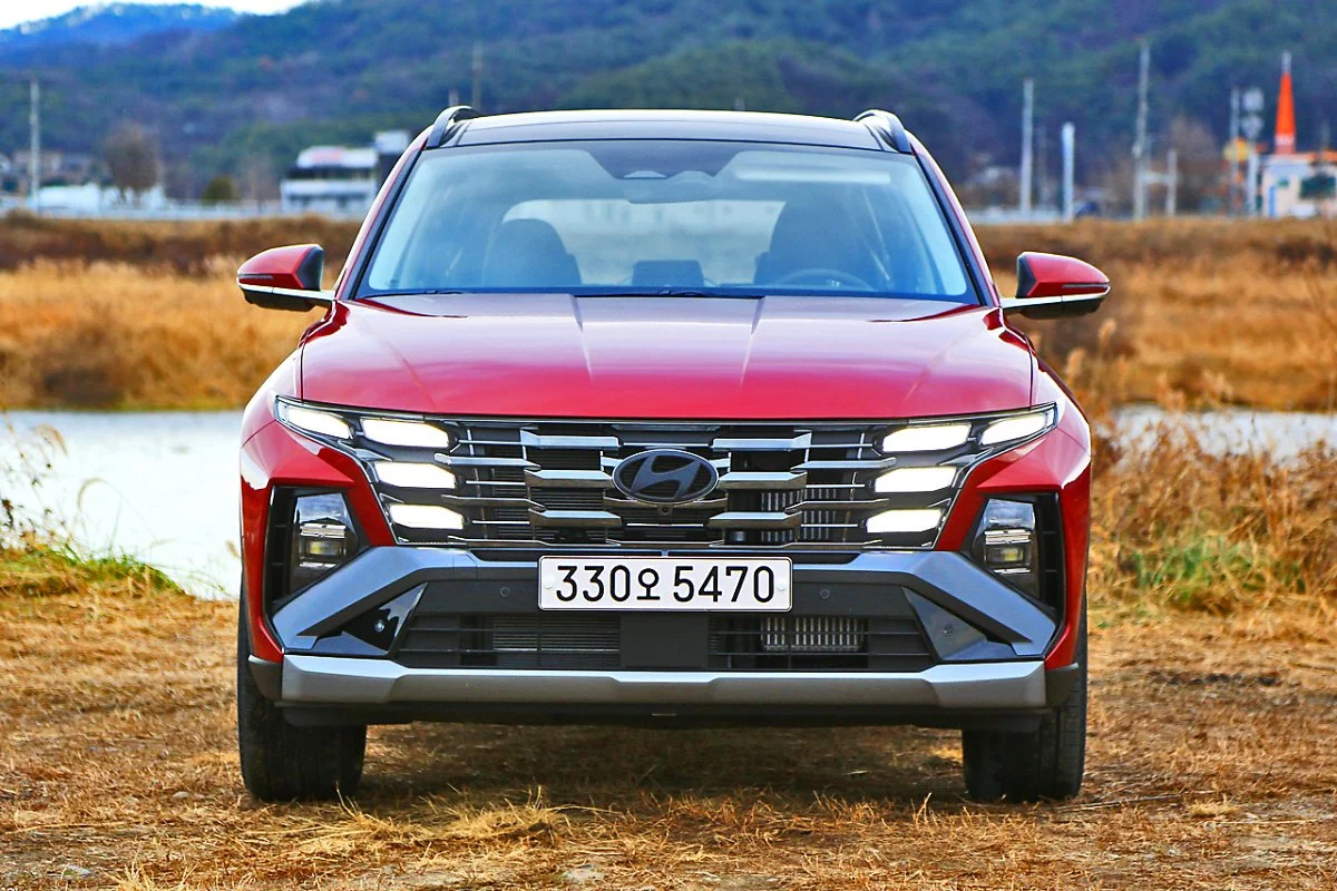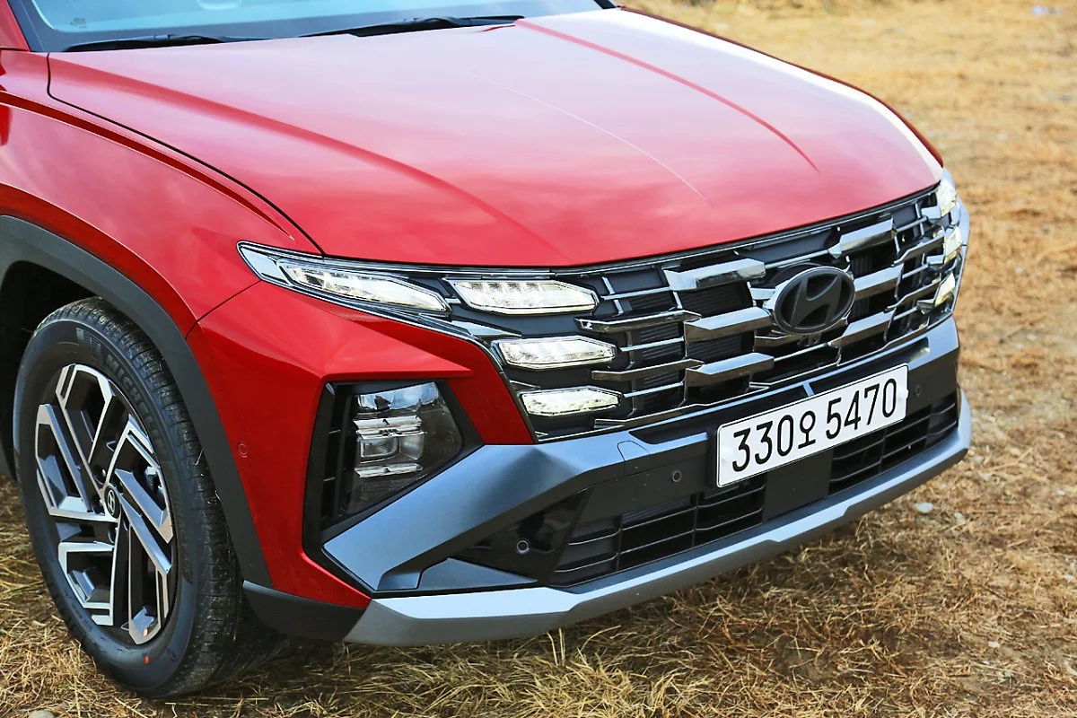 4세대 투싼은 '파라메트릭 다이나믹스(Parametric Dynamics)'로 이름 붙여진 특유의 디자인이 매력입니다. 주간주행등 기능을 주행하는 파라메트릭 쥬얼 히든 램프는 라디에이터 그릴과의 경계가 없어 투싼만의 디자인을 더욱 확고하게 만듭니다. 더 뉴 투싼은 이를 그대로 계승하되 얇으면서도 각진 형태로 패턴을 변경해 한층 단단하고 와이드한 이미지를 만들어낼 수 있었습니다. 범퍼와 스키드 플레이트는 좌우로 뻗어나가는 형상으로 디자인해 차폭이 훨씬 넓어 보이도록 하고 있습니다.