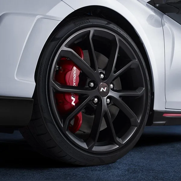 벨로스터 N의 N 퍼포먼스 파츠 전용 휠은 ‘19인치 경량 휠’을 제공한다. 검은색의 휠 색상과 빨간색 캘리퍼의 대비 효과로 강한 이미지를 전달하며, 무엇보다 대당 약 2.1kg의 경량 효과를 주기 때문에 고성능의 진한 맛을 느껴볼 수 있다.