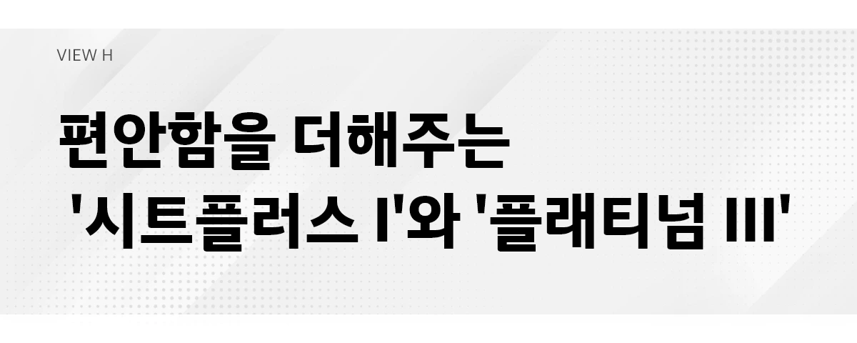 기본 사양으로도 이미 편안한 환경을 구현하지만, 시트플러스 I(45만 원)와 플래티넘 III(45만 원)를 추가하면 상위트림 못지 않은 사양으로 구성할 수 있습니다. 시트 플러스 I은 운전석 8way 전동시트, 동승석 8way 전동시트, 동승석 워크인 디바이스가 포함되며, 플래티넘 III는 현대 디지털 키, 스마트폰 무선충전, 220V 인버터(2열 1개)가 제공됩니다.