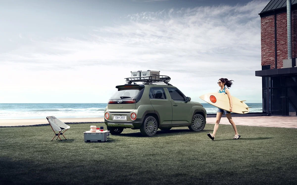 ‘공간활용의 기술’은 캐스퍼의 실내외 공간을 모두 알차게 사용할 수 있는 액세서리들로 구성됐습니다. 캐스퍼에 적용되는 루프랙을 활용해 차체 지붕에는 루프 박스뿐만 아니라 루프 바스켓도 설치할 수 있으며 조수석에는 시트백 보드 트레이도 마련해 조수석 시트 폴딩 시 활용도를 높였습니다. 또한 캐스퍼에 트렁크에 맞춰 러기지 박스와 캠핑 트렁크도 별도로 마련했습니다.