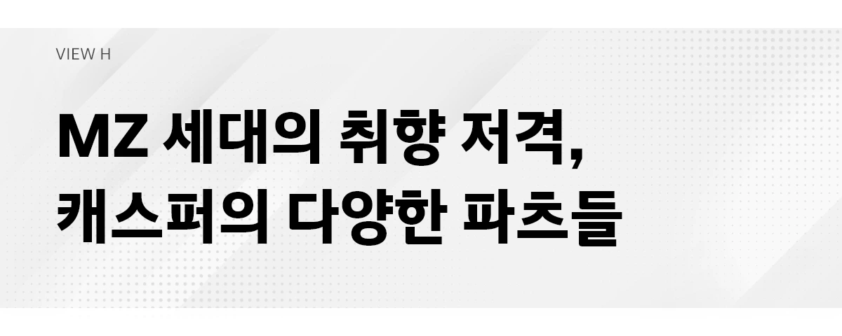 MZ 세대는 기존 기성세대와는 다르게 집단보다는 개인의 행복과 남들과는 다른 개성을 추구합니다. 이러한 MZ 세대의 특징을 반영해 캐스퍼는 다양한 순정 액세서리도 마련했습니다. H 제뉴인 액세서리라고 불리는 캐스퍼의 순정 액세서리들은 동급의 경쟁 모델들 중에서도 가장 광범위하며 공간활용의 기술, 펫 프렌들리, 여행의 정석 등 세 가지로 세분화되어 있는 것이 특징입니다.