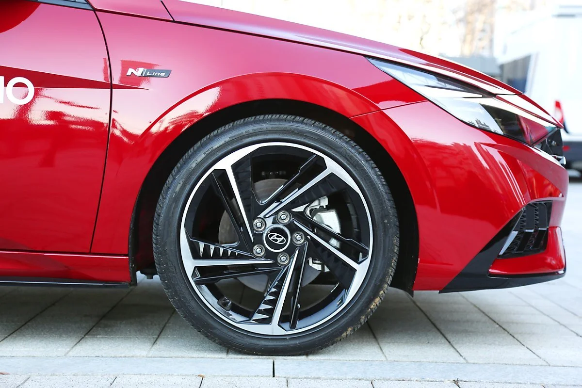 외관에는 N 전용 디자인이 적용돼 프론트와 리어 범퍼 디자인이 큰 폭으로 변경됐습니다. 프론트 범퍼에는 날카로운 아반떼의 디자인에 발맞춰 헤드램프 하단부에는 무광 소재가 사용됐고, 그릴의 디자인도 훨씬 역동적입니다. 측면에는 차체에 색상과 상관없이 검은색 사이드미러가 적용되며 19인치 전용 휠, N이 새겨진 사이드실 몰딩, 검은색 유광 DLO 등이 적용돼 역동성이 배가됩니다.