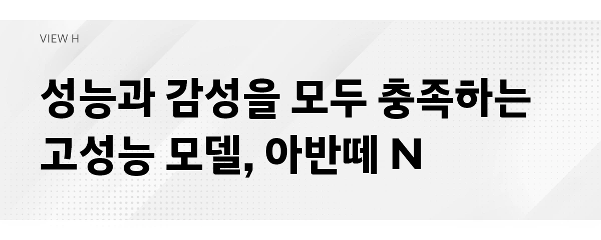 280마력의 최고출력과 40kg.m의 최대토크를 발휘하지만 때에 따라 최고출력이 10마력 높아지는 가솔린 2.0리터 플랫파워 터보 엔진, N 전용 대용량 고성능 브레이크, N 코너 카빙 디퍼렌셜, 전자 제어 서스펜션, 후륜 멀티링크 서스펜션, 멀티 커스텀 모드와 주행 정보를 표시하는 N 크린 컨트롤 시스템, N 사운드 이퀄라이저, 능동 가변 배기 시스템, R-MDPS 등 주행 특화 성능이 풍부하게 적용된 아반떼 N은 높은 출력만큼이나 디자인도 일반 모델과 확실한 차별화를 이루고 있습니다.