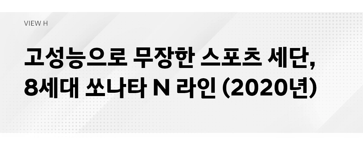 현대차는 세대가 거듭될 때마다 엔진을 비롯한 부가적인 성능 개선을 이뤄왔지만, 수십여 년간의 내공을 본격적으로 드러낸 것은 바로 2020년 등장한 8세대 쏘나타 N 라인이라고 할 수 있습니다. 8세대 쏘나타 N 라인은 성능을 넘어 디자인과 사양까지 모든 것에서 전작들과 확실한 차별화를 이뤄냈습니다. 게다가 분위기, 감성, 추구하는 가치 등 보이지 않는 것에도 신경 썼습니다.