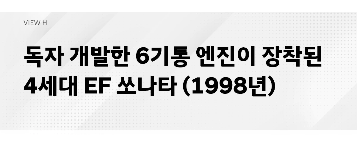 중형세단의 공식과도 같았던 2리터 엔진에서 2.5리터로 배기량을 늘리며, 6기통 엔진을 처음 장착했던 모델은 4세대 EF 쏘나타였습니다. 당시에는 1.8리터 엔진과 2리터 엔진이 중형세단의 표준으로 통했습니다. 그러나 4세대 EF 쏘나타는 대형세단의 특권과도 같았던 2.5리터 V6 엔진을 장착하고, Elegant Feeling이라는 콘셉트로 고급화를 진행하면서 중형세단의 새로운 방향성을 제시했습니다.