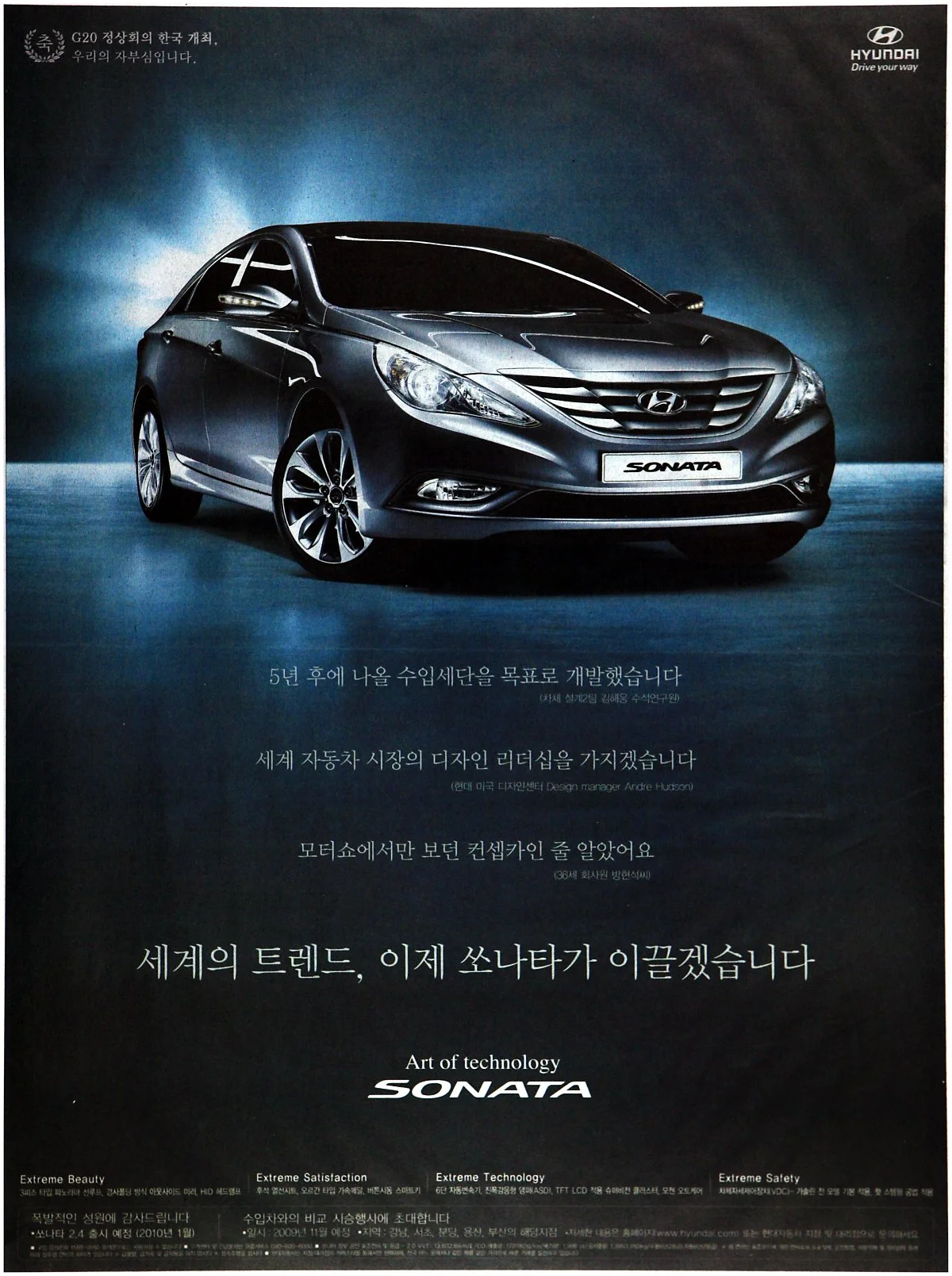 이후 세대를 거듭하며 쏘나타는 국산 중형세단 특유의 고급감과 널찍한 실내공간을 국산 중형세단의 특징으로 정립하는데 큰 역할을 하며, 국산 중형세단의 교과서로 자리 잡게 되었습니다. 이후 쏘나타는 경쟁 모델들과 다르게 다양한 시도를 해왔습니다. 그중 하나가 바로 고성능 모델입니다.