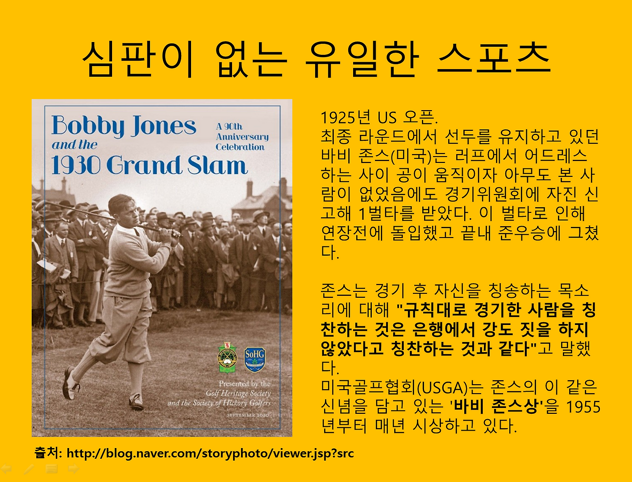 2022년 6월 16일 한국여자오픈 1라운드 15번 홀에서 오구플레이를 한 '윤ㅇㅇ' 선수는 이를 숨기고 있다가 한 달 후 KGA에 자진 신고했다. 바비 존스와 너무 대비가 된다. 현존하는 최고의 SF소설가로 추앙받는 테드 창Ted Chiang은 그의 단편집에서 세상에는 돌아오지 않는 네 가지가 있다고 이야기하고 있다. ①입 밖에 낸 말, ②공중에 쏜 화살, ③지나간 인생, ④놓쳐버린 기회이다.(테드 창, EXHALATION;숨, 엘리 2019, p49.)