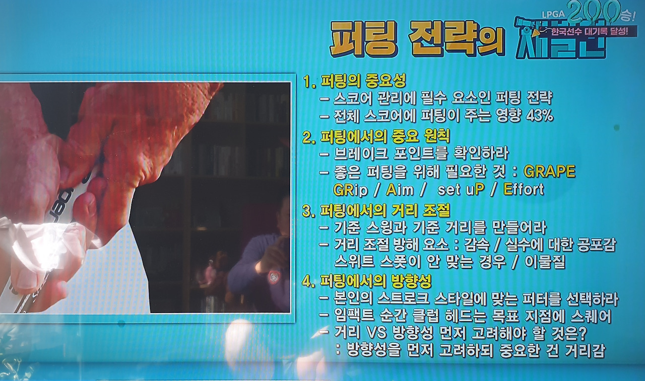 jtbc 방송 '골프의 재발견'에서 퍼팅이 전체 스코어에 43% 영향을 미친다고 하며 그 중요성을 강조하고 있다.(jtbc 2021. 10. 28.)
