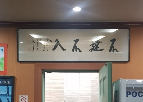 경기도 과천시 자하동길 과천 골프연습장 락카 입구에 ‘Never up, Never in’을 한자로 표현한 '부달불입(不達不入)' 액자가 걸려있다.