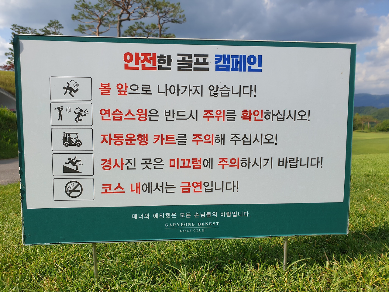 골프장 안전사고 유형으로는 대략 다섯 가지로 나눌 수 있다. 타구 사고, 카트 사고, 미끌림 낙상(落傷) 사고, 해저드 사고, 낙뢰사고Thunderbolt이다. 이중 낙뢰사고를 제외하고 골프 경력이 약 15년 정도 되는 필자도 라운딩 현장에서 직간접적으로 이러한 유형의 안전사고를 거의 다 경험할 정도였으니 골프장 안전사고에 정말 유의하면서 경기 진행을 해야 한다고 강조하고 싶다. 지금 다시 사고 순간을 회상해 보아도 그 순간이 아찔했다는 느낌이 든다.