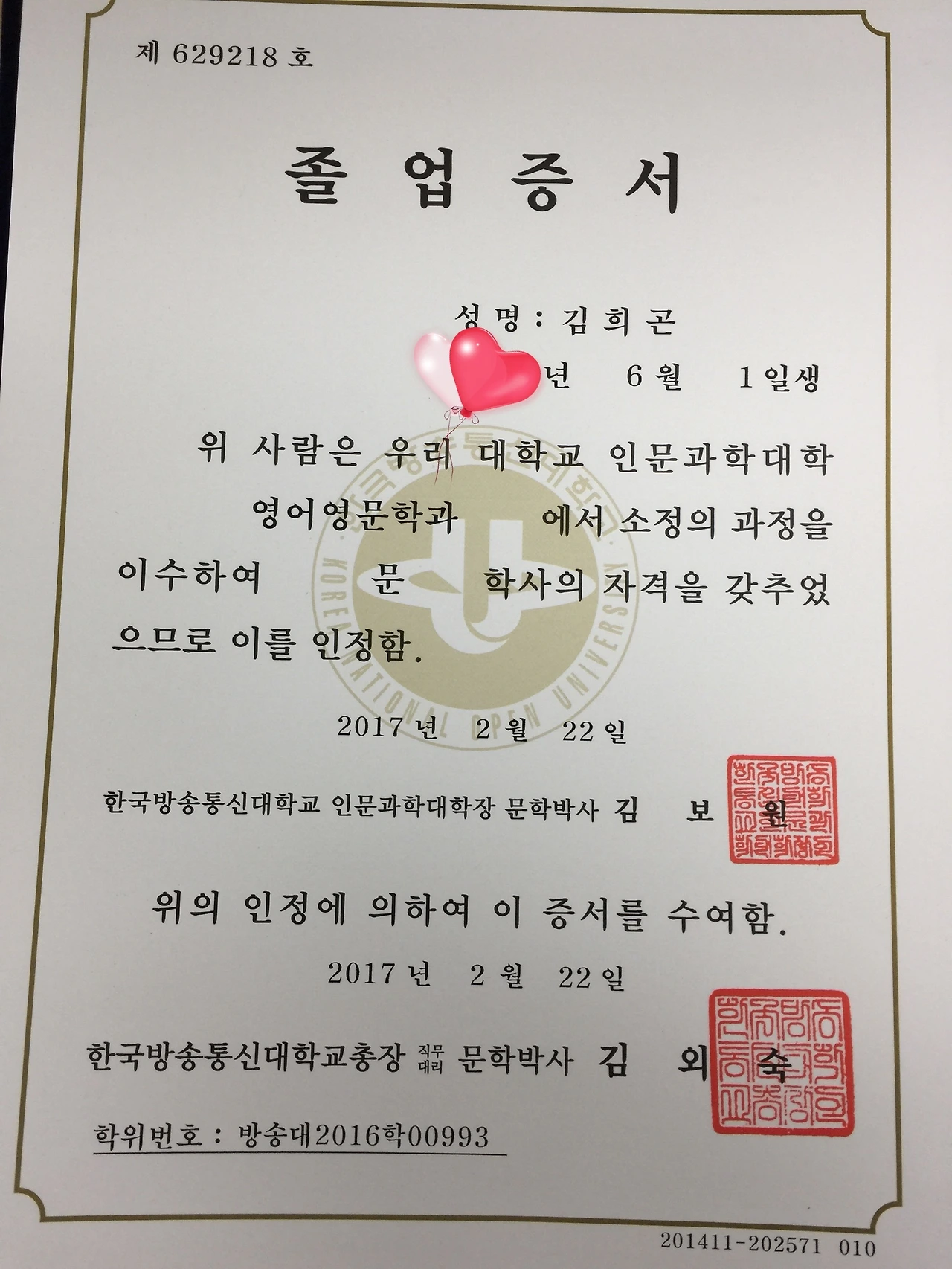 퇴직 후 나는 방송통신대학교 영문학과에 입학했다.