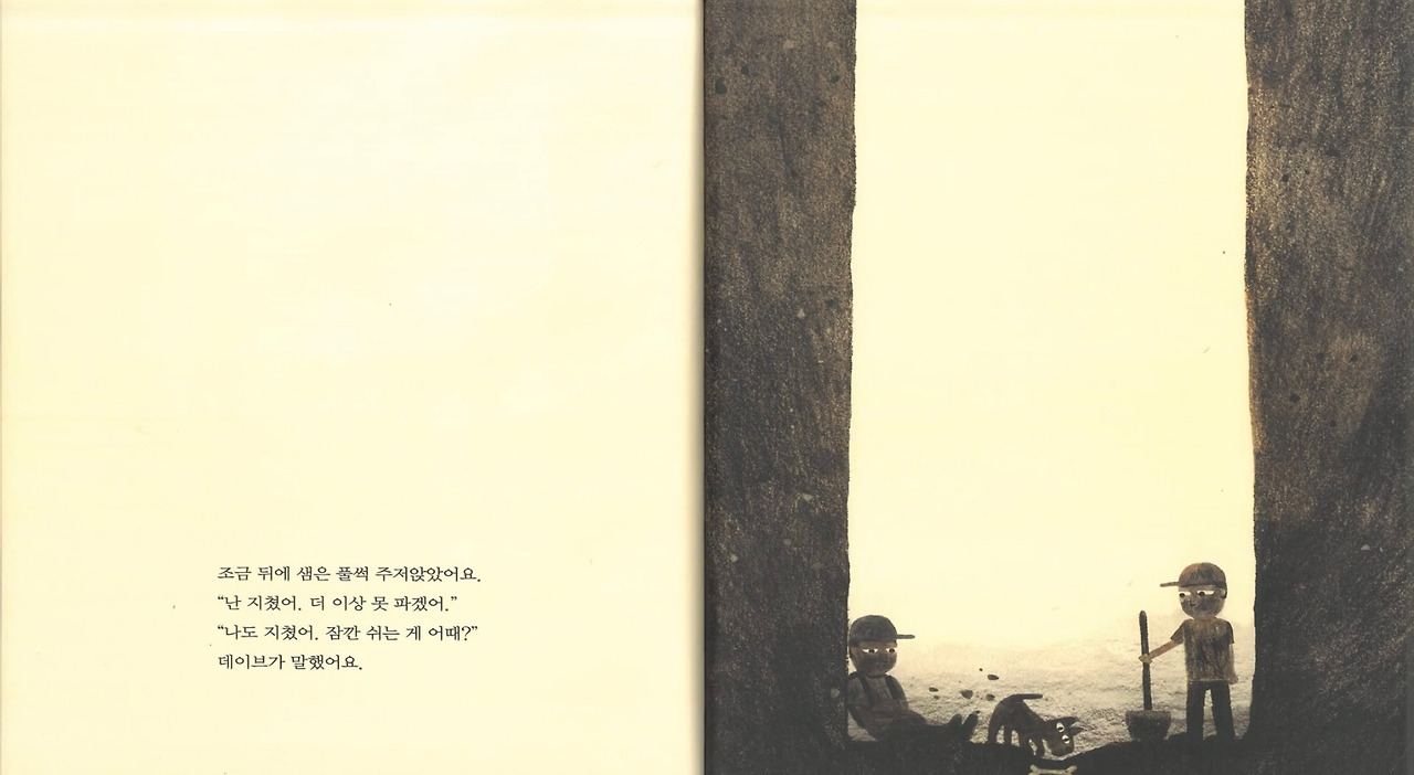 보는 나는 답답하지만 샘과 데이브는 알 길이 없다. 그저 묵묵하게 땅파기에 몰입해 있을 뿐이다.