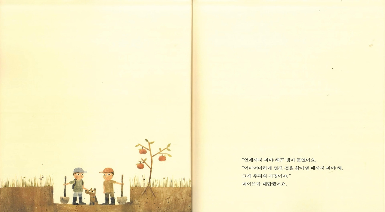 어마어마하게 멋진 것... 땅을 파고 또 파 들어가는 이 열정적인 작업을 통해 결국 찾아낼 이루 말할 수 없이 멋진 것이란 무엇일까.. 큰 꿈과 기대가 생긴다.