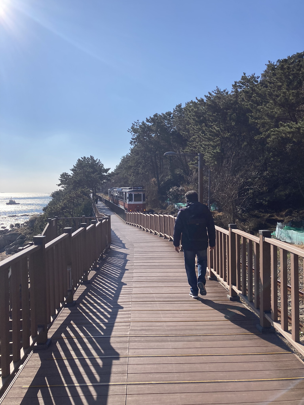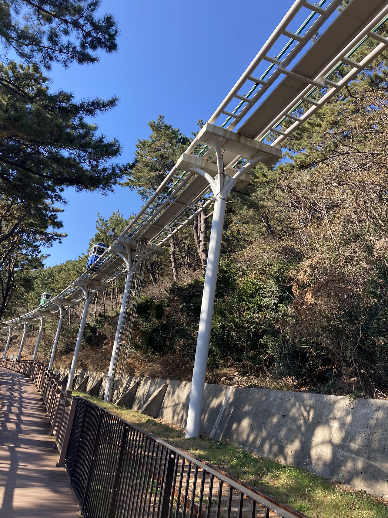 산책로를 지나다 만나는 해안열차와 스카이 캡슐