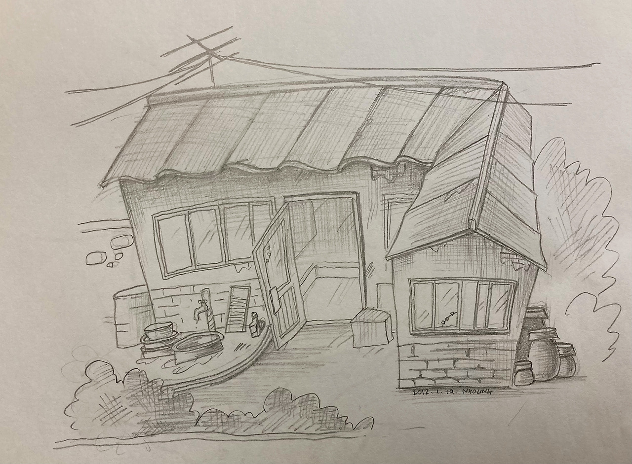 #비오는날#산동네#손님#추억#감사#공동생활#그림#연필그림