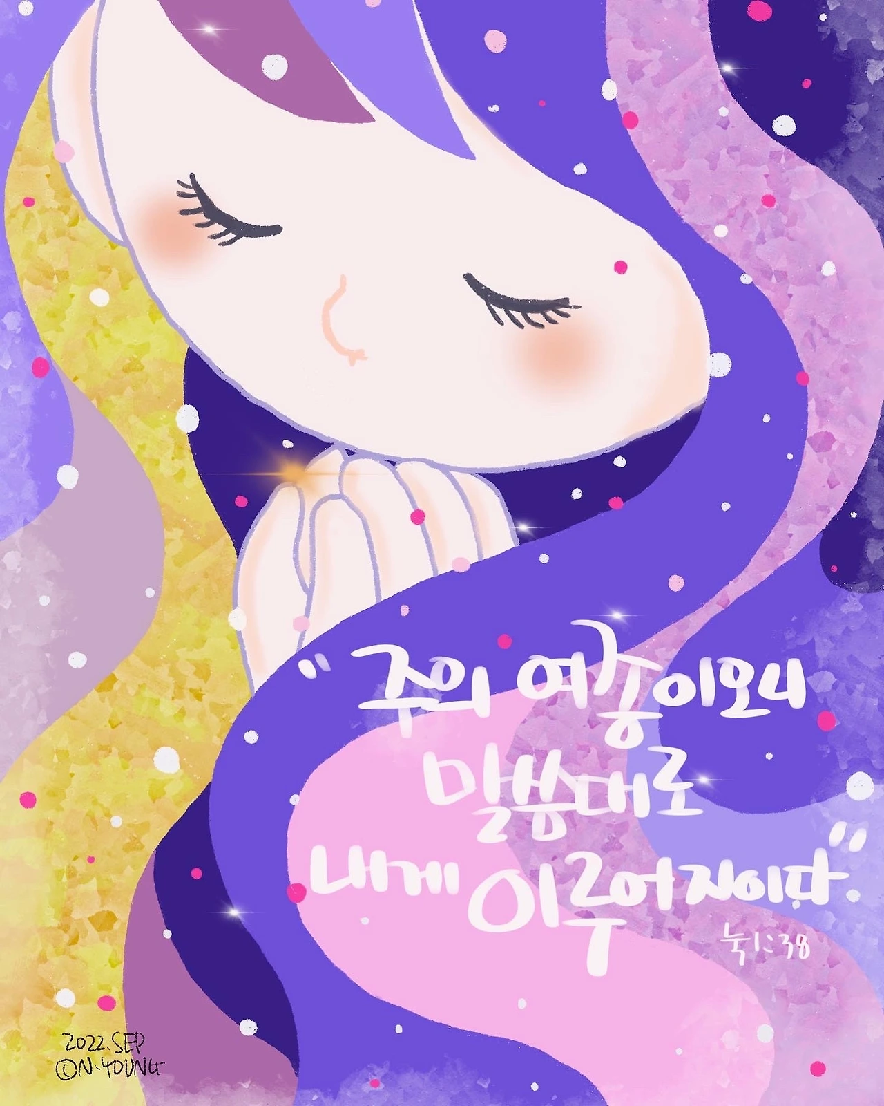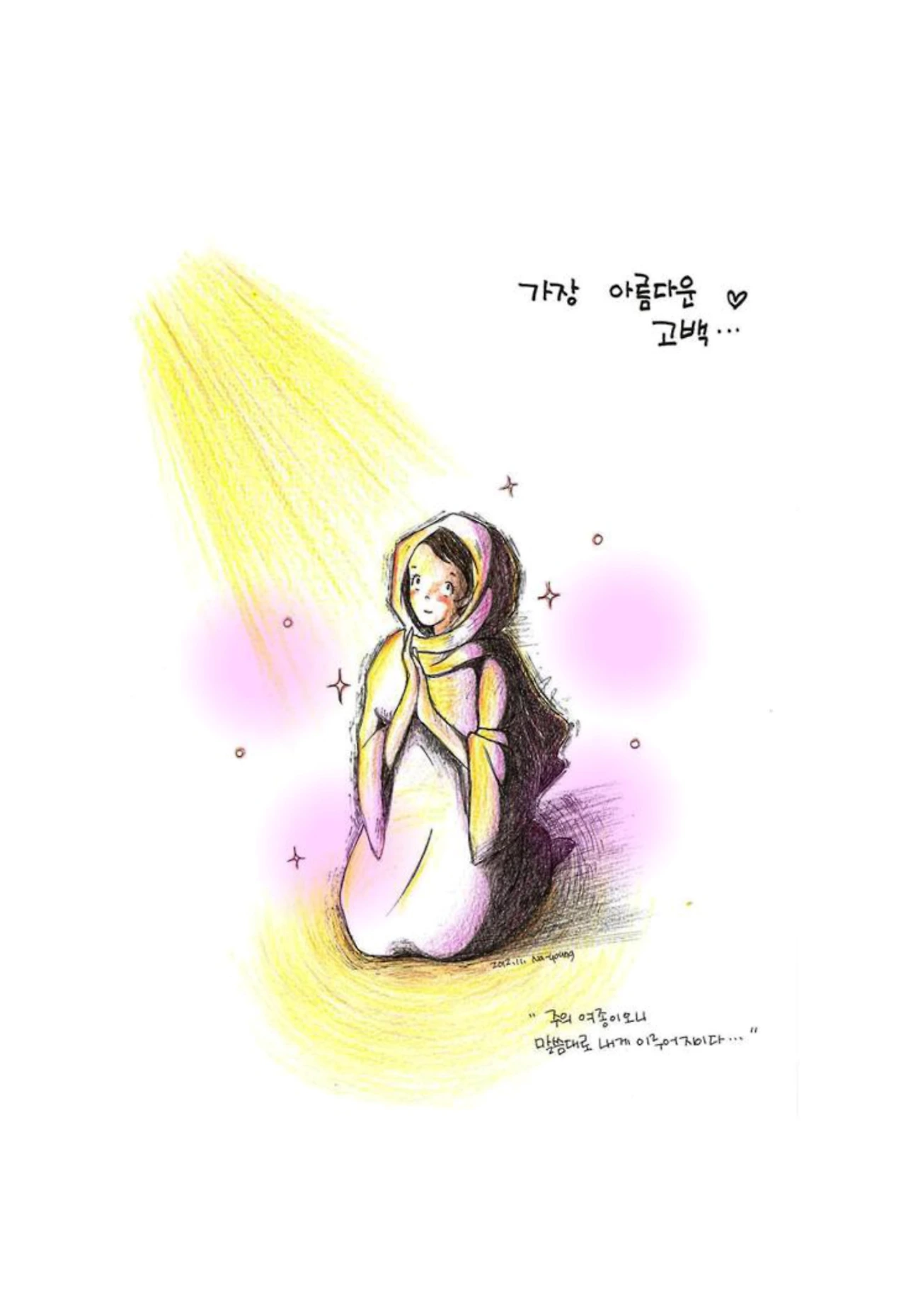 #가장아름다운고백#마리아#순종#주님의종#주의여종이오니#내영혼이주를찬양#주의긍휼하심#복이있다#그림묵상#말씀묵상#일러스트레이션#프로크리에이터#묵상