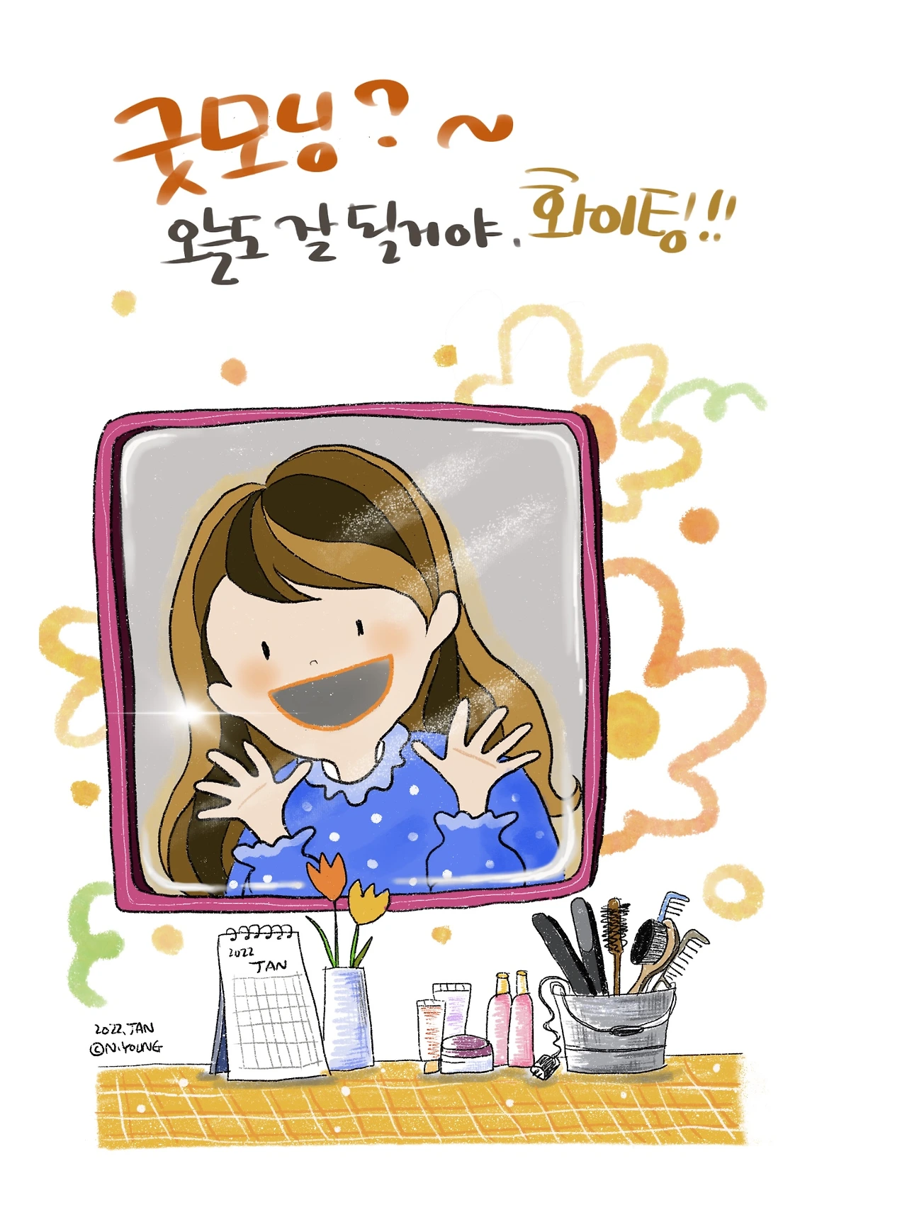 그래서 매일 아침 하루를 시작할 때, 거울 속 자신을 보고 활짝 웃는 얼굴로 이렇게 말해주라고 그림을 통해 일러주고 싶었습니다.