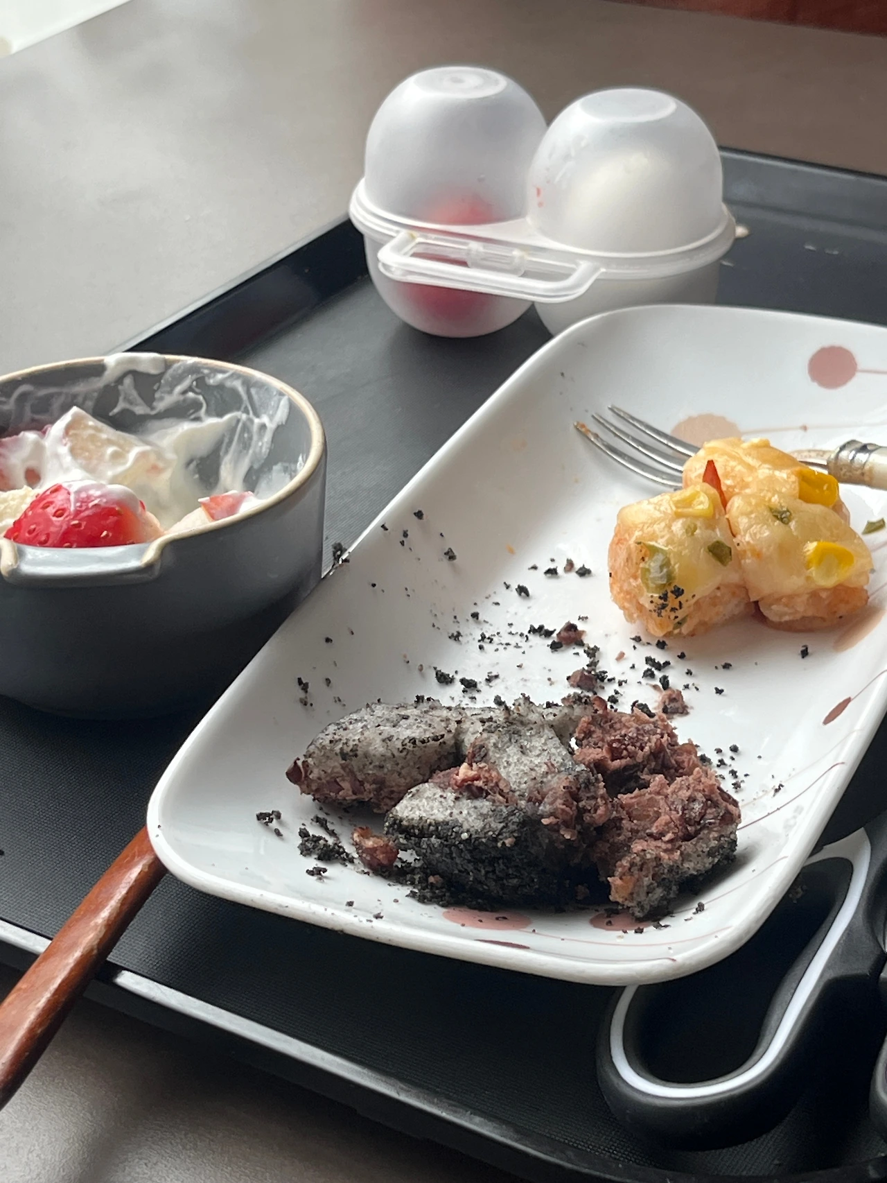 오늘은 아침에 일어나자마자 내린 두유라테에 냉동실에 있던 흑임자, 피자 떡 두 개 + 딸기 요거트까지 야무지게 해치웠다.