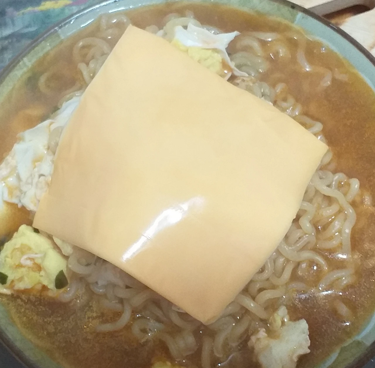 ♤ 메뉴 : 계란 넣은 치즈라면, 알타리 김치, 사과, 귤