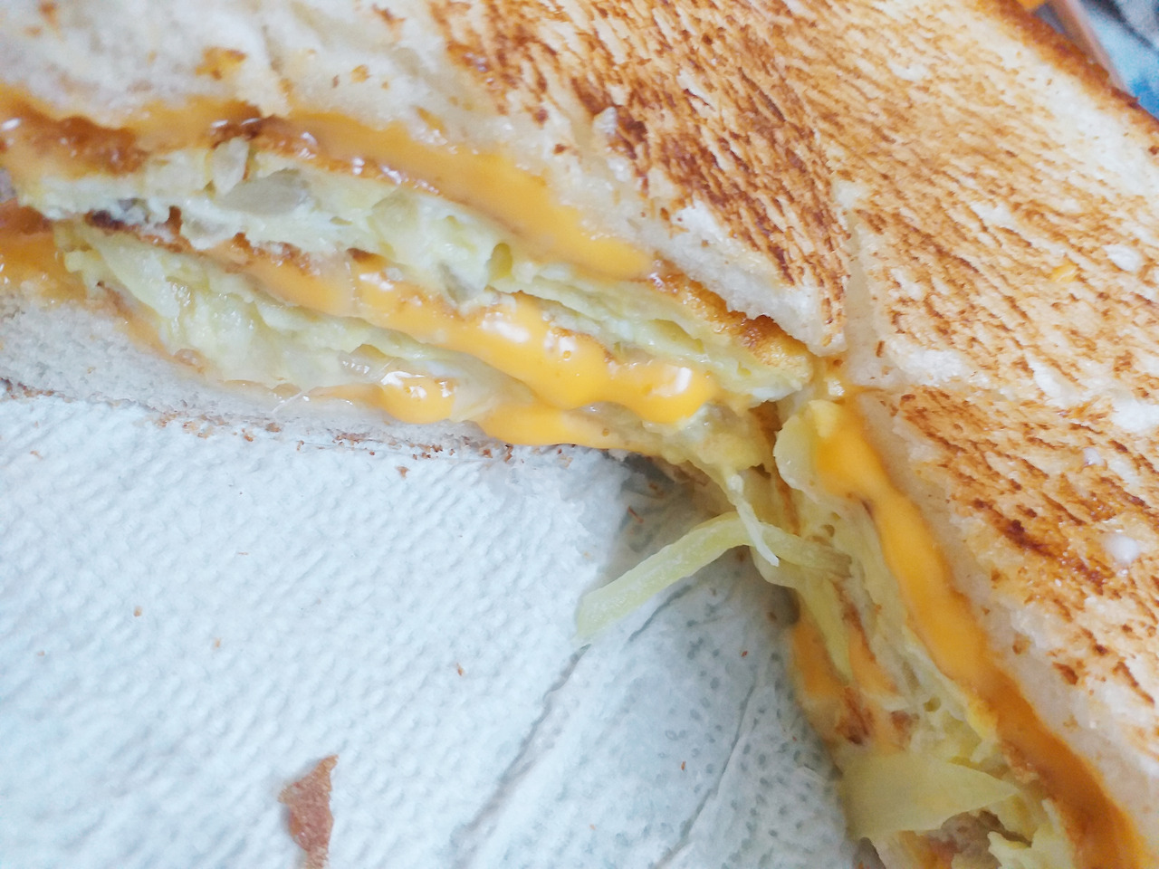 어제는 계란 두 개를 한 번에 풀어 두꺼운 계란 부침이 들어간 토스트를 먹었다.