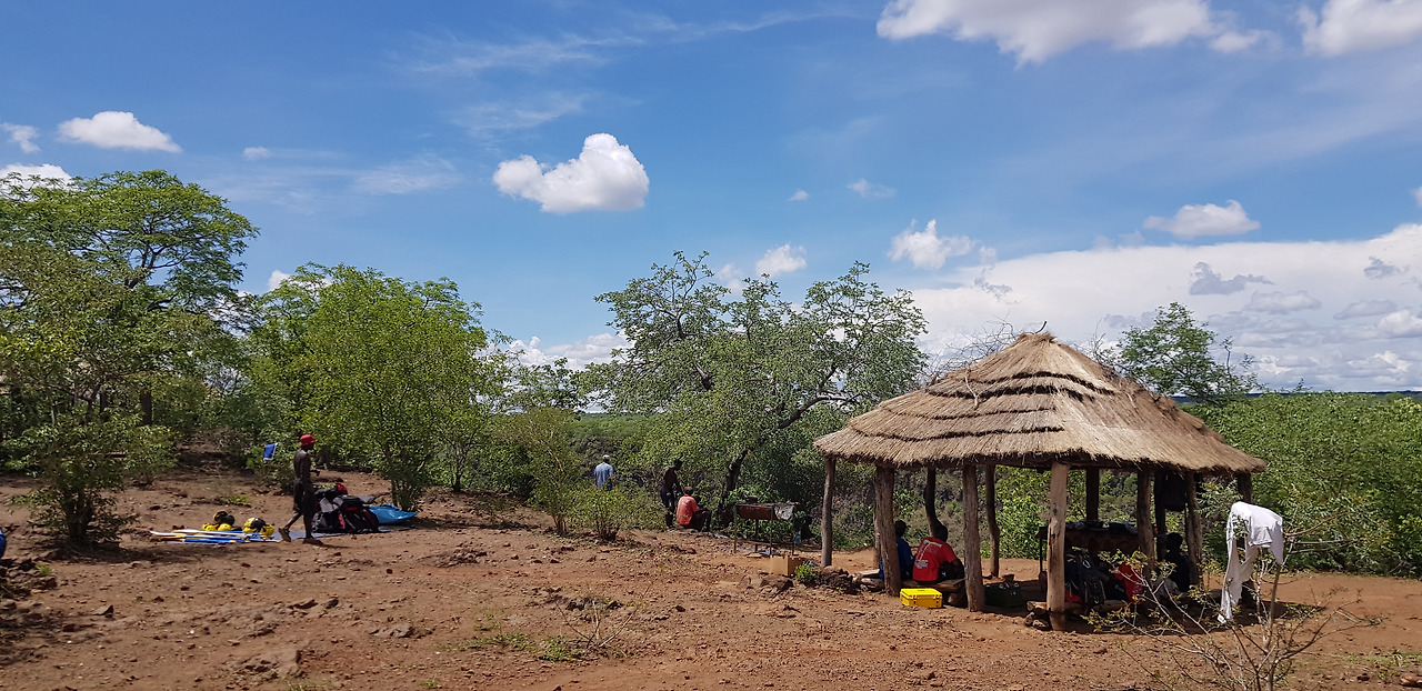 저 오두막 밑에서 점심을 다 함께 먹었다.
