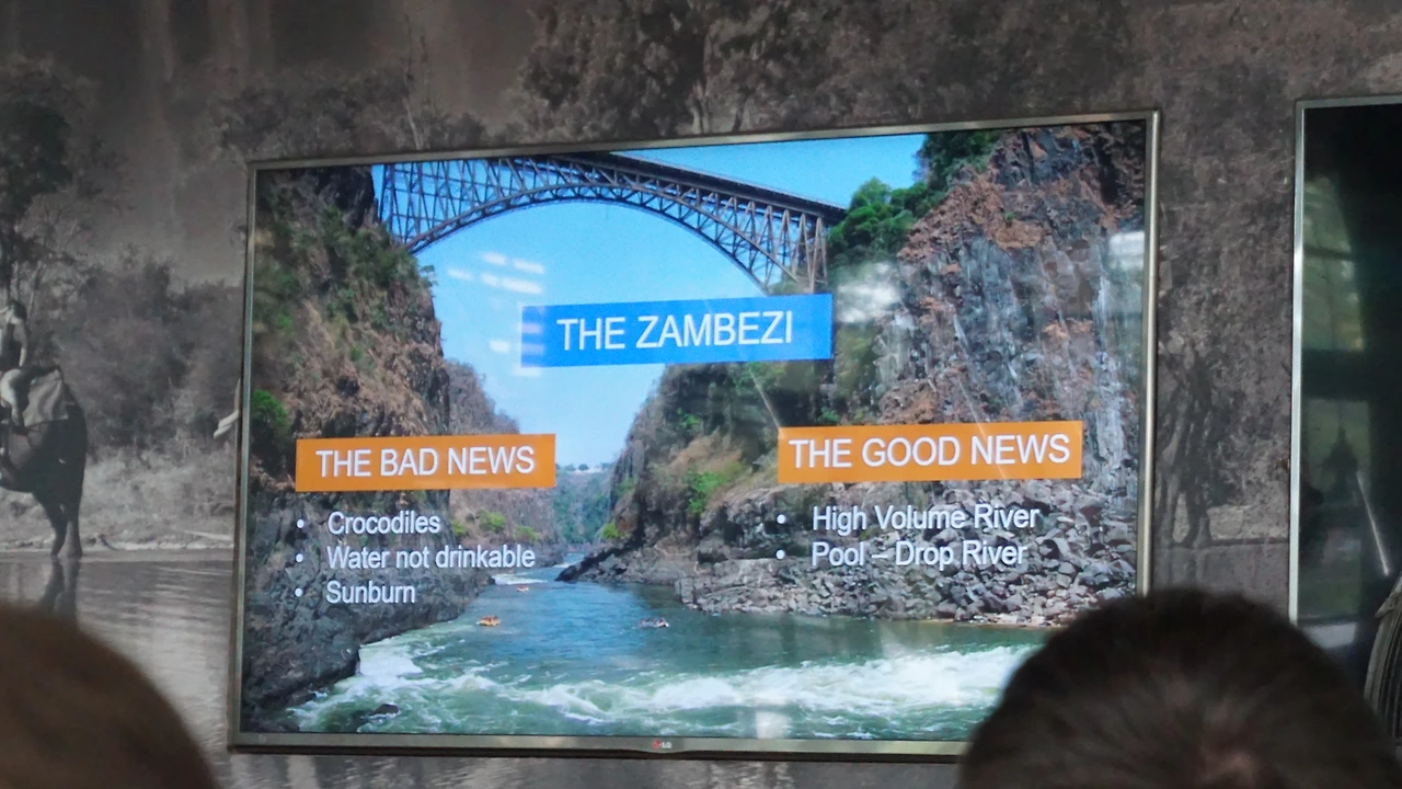 7시 40분부터 이론 교육이 시작되었다. 강습은 간결했다. 좋은 소식과 나쁜 소식이 있는데, 좋은 소식은 많은 유량, 멋진 뷰였다. 나쁜 소식은 악어, 물 마시면 걸리게 될 배탈 남, 햇빛에 의한 화상... 뭐 이 정도?ㅋㅋㅋ