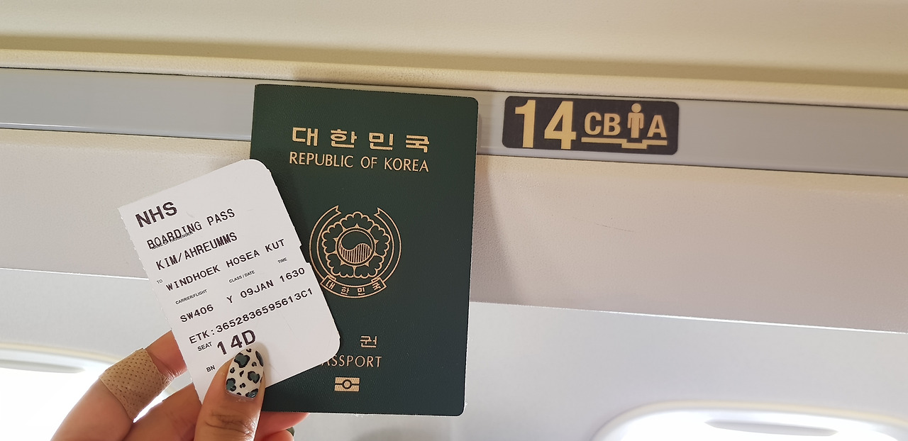 나미비아로 향하는 국제 비행선 탑승 게이트 앞으로 갔는데 우리 말고는 탑승객이 아무도 없어서 비행기가 취소된 것이 아닌가 걱정을 했다. (손익분기점 걱정) 분명 탑승은 3시 50분인데 4시 15분이 다 되어서도 안내가 딱히 없었다. (불안, 초조) 그러나 안내 모니터에는 여전히 우리 비행기 편 안내가 떠 있어서 더 기다려보기로 했다. 4시 30분. 드디어 탑승 안내가 울렸고 우리는 무사히 비행기에 올랐다.