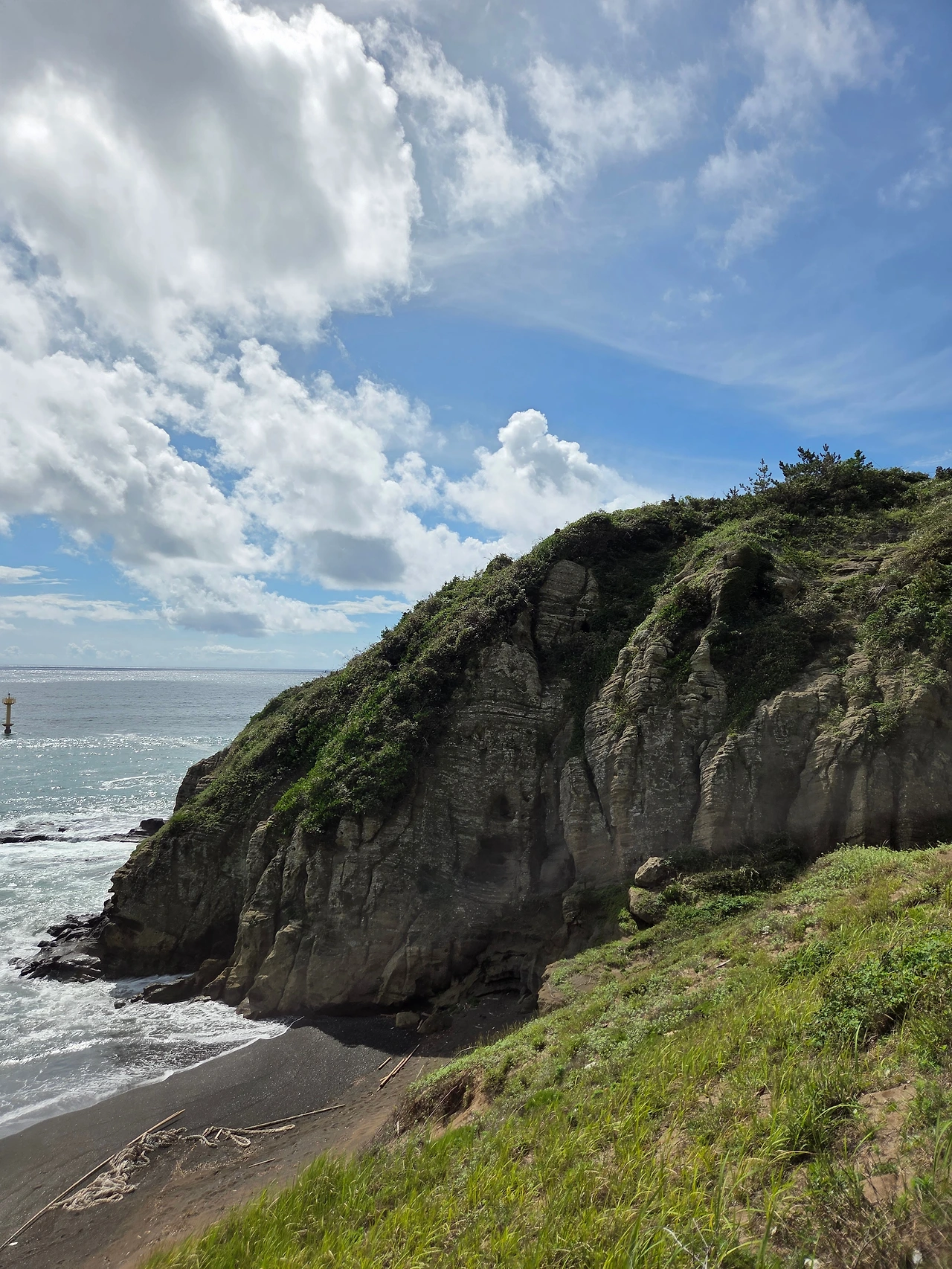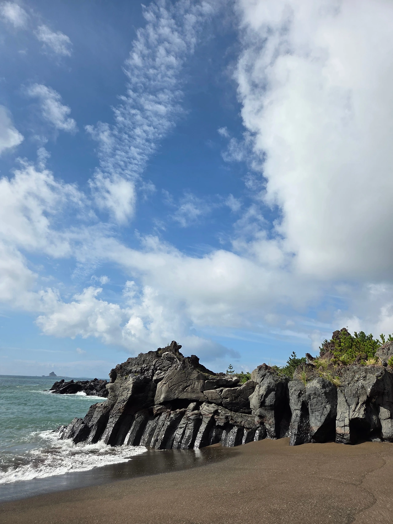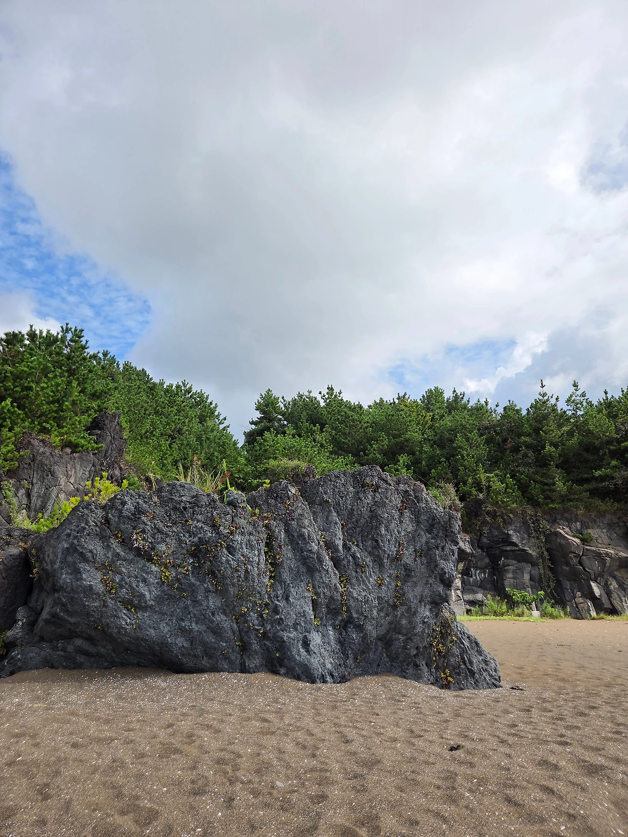 황우치 해변에 이르러 바위 구멍으로 산방산을 올려다볼 수도 있는데 한창 수풀이 우거져 있어 멋진 그림을 만날 순 없었지만, 시원한 날 썰물일 때 그곳을 걷게 되면 매력적일 장소임에 틀림없다.