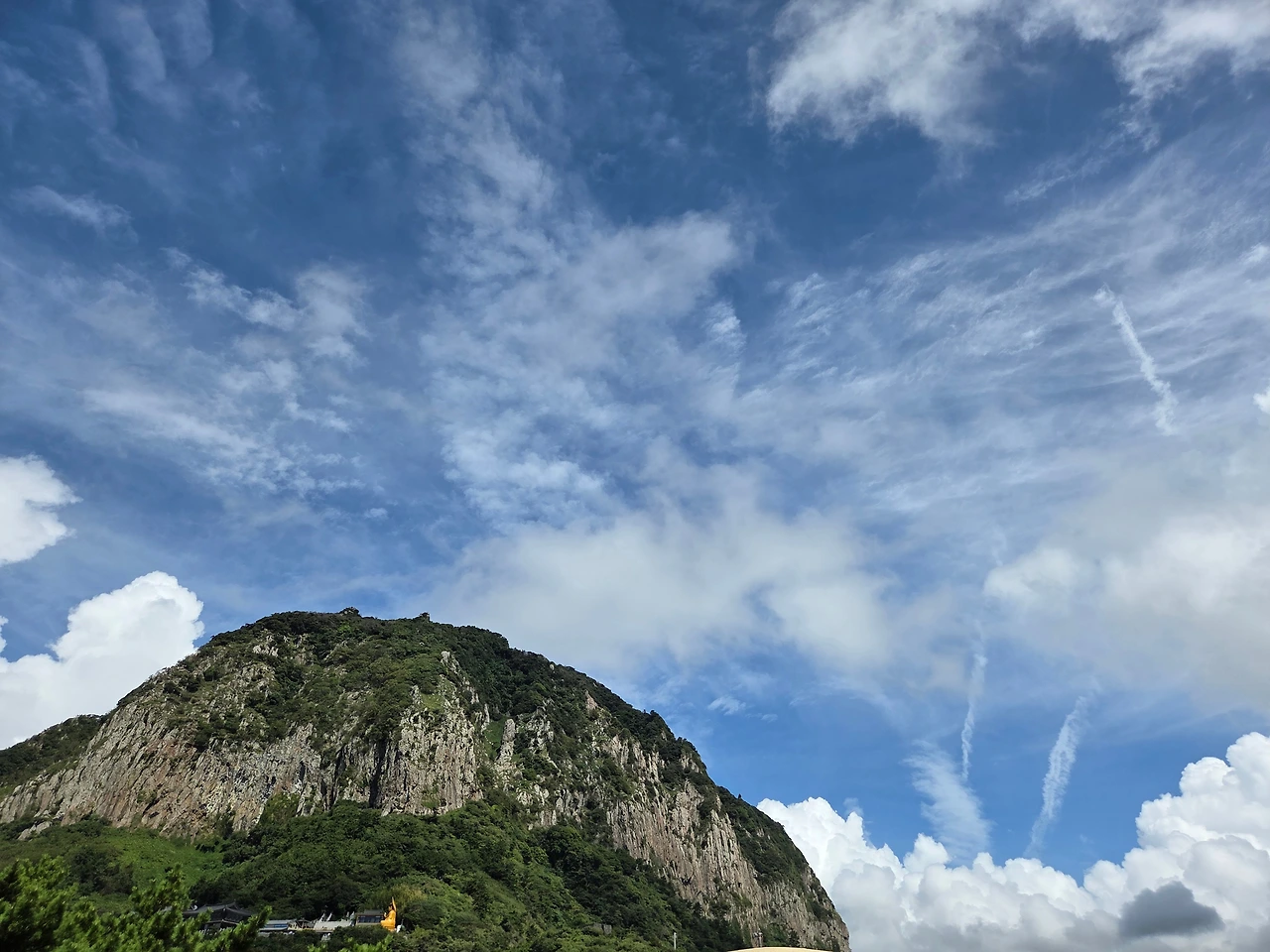 제주시에 사는 이들은 길을 가르쳐줄 때 한라산 방향으로~라고 말하기도 하니 어디서나 기준점이 되어주는 커다란 윤곽이라 할 수 있는데, 중앙의 한라산에서 누가 뚝 떼어 던져낸 덩어리가 산방상이라 했다. 힘도 좋지 저걸 번쩍 들어 던지다니. 누군지를 까먹^^. 여하튼 그추룩(그토록) 한라산과 산방산은 닮은 점이 참 많다고 한다. 산을 이루고 있는 커다란 암석도 조면암으로 같은 종류라 하니 어느 거인이 던졌으려나, 신기할 따름이다. 우린 이 믿거나 말거나 뻥을 즐거이 듣는다.
